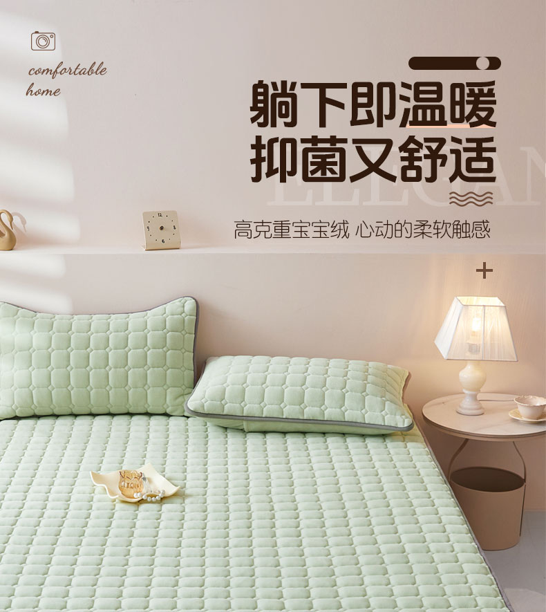 宝宝绒纯色床褥(新款)-茉莉奶绿