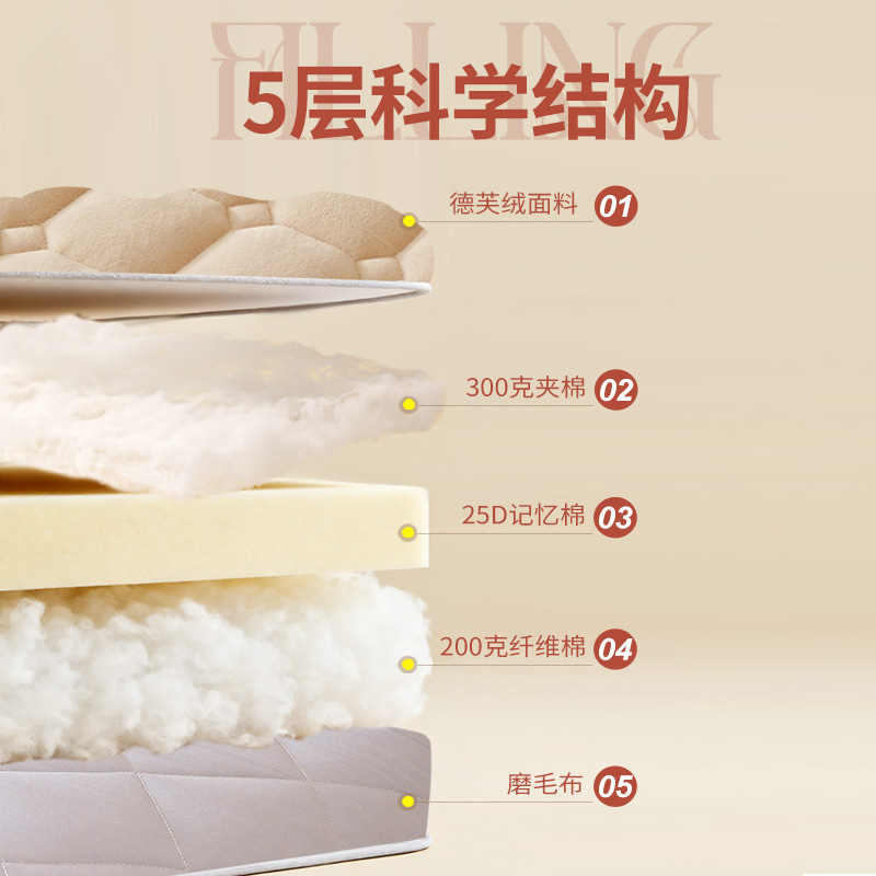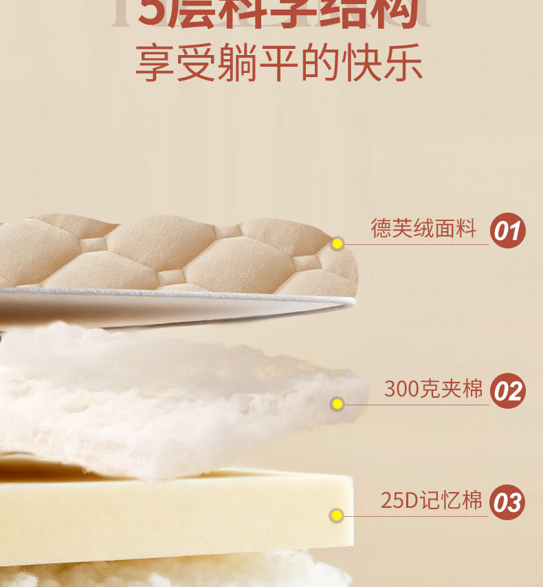 • 德芙绒记忆棉两用床垫5厘米-驼色 原图下载