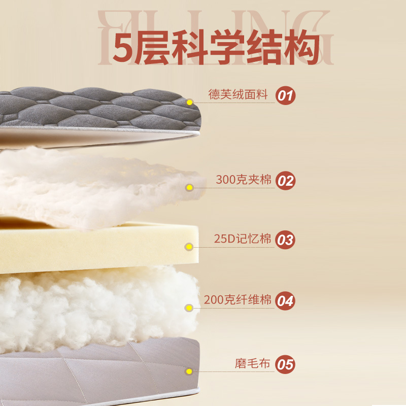 • 德芙绒记忆棉两用床垫5厘米-灰色 原图下载
