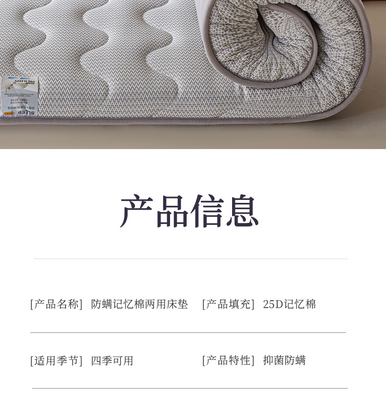 • 防螨记忆棉两用床垫5厘米-灰色 原图下载