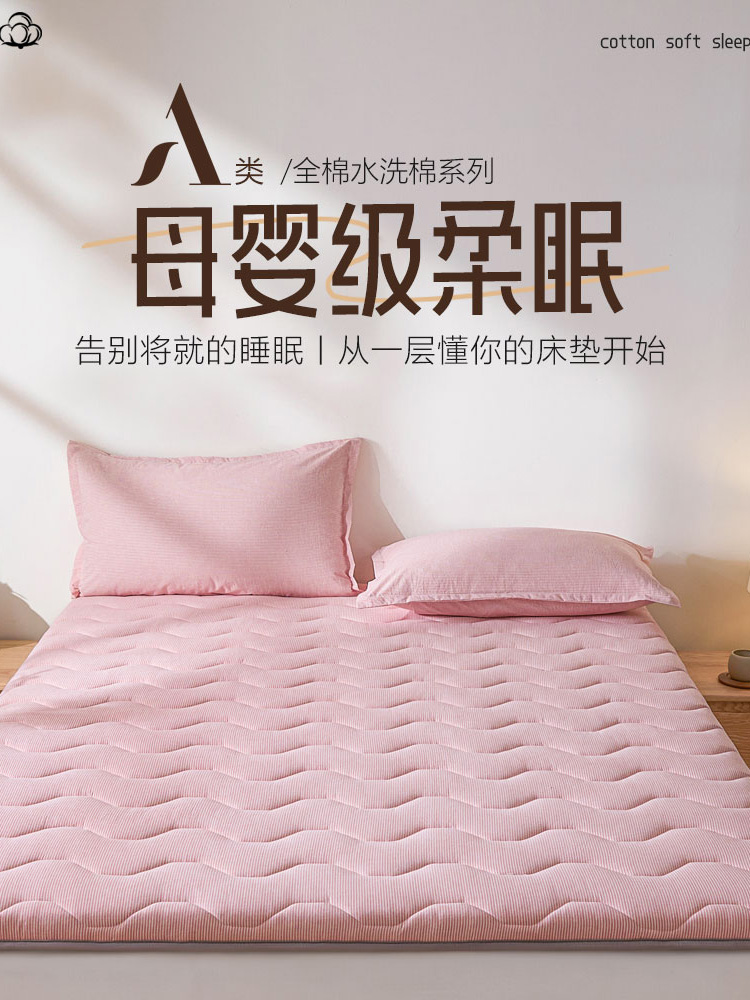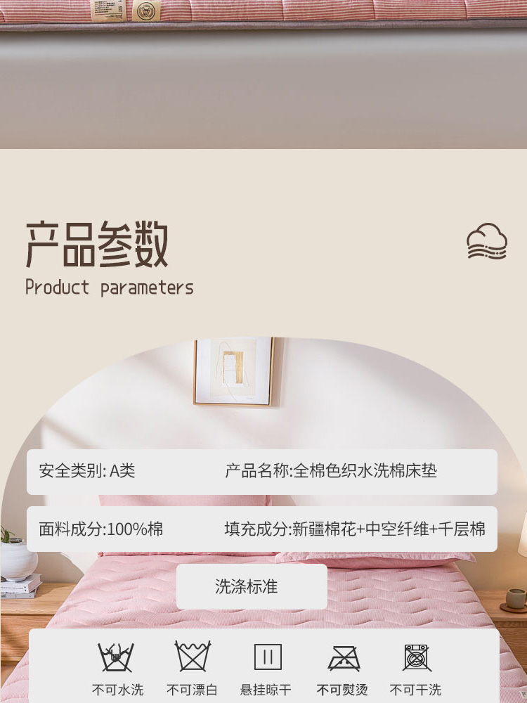 • 全棉棉花三明治床垫-细条粉 原图下载