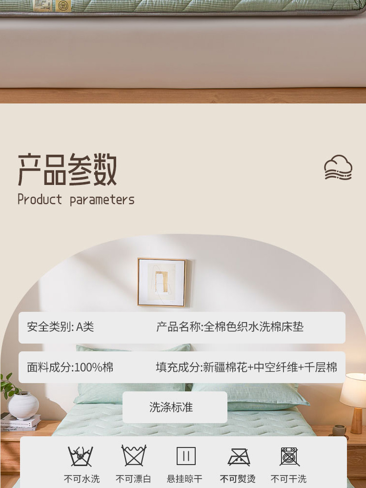 • 全棉棉花三明治床垫-细条绿 全系图片下载