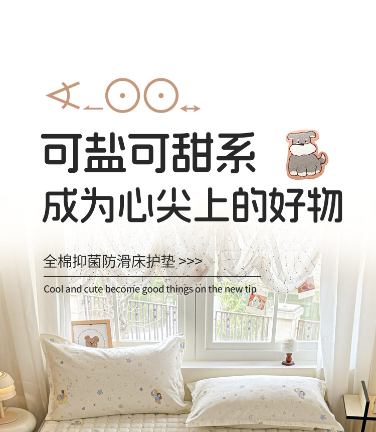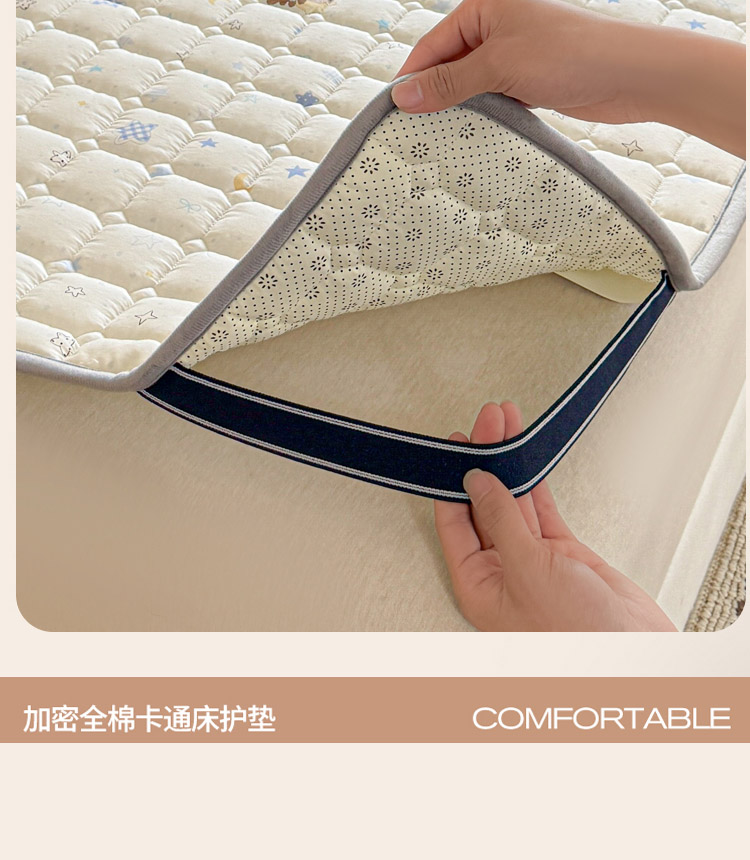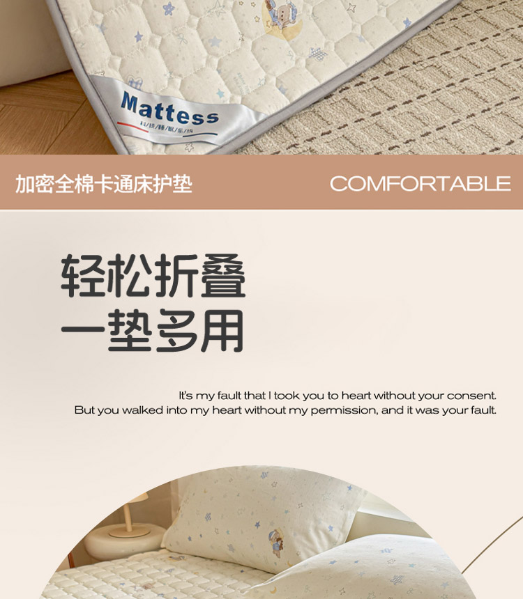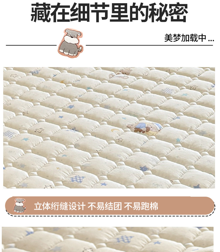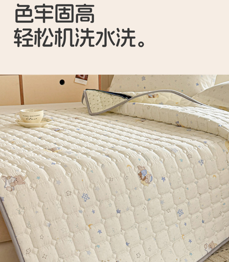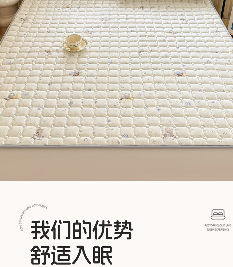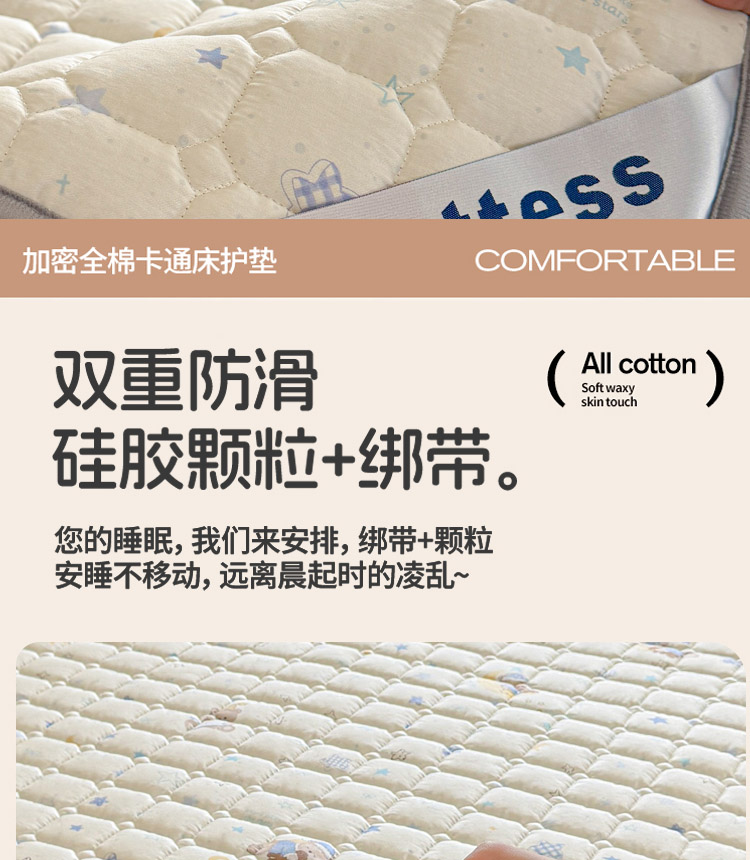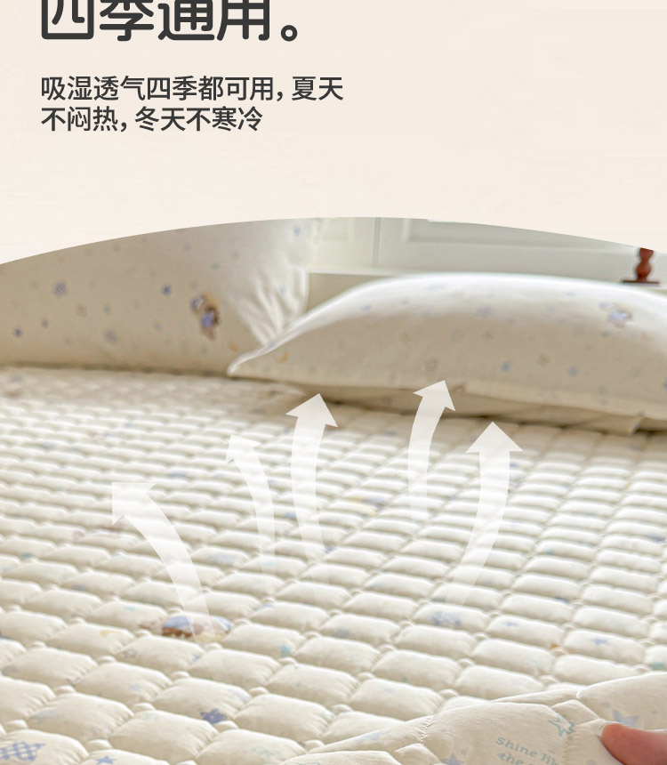 全棉抗菌防滑床褥-星眠小熊