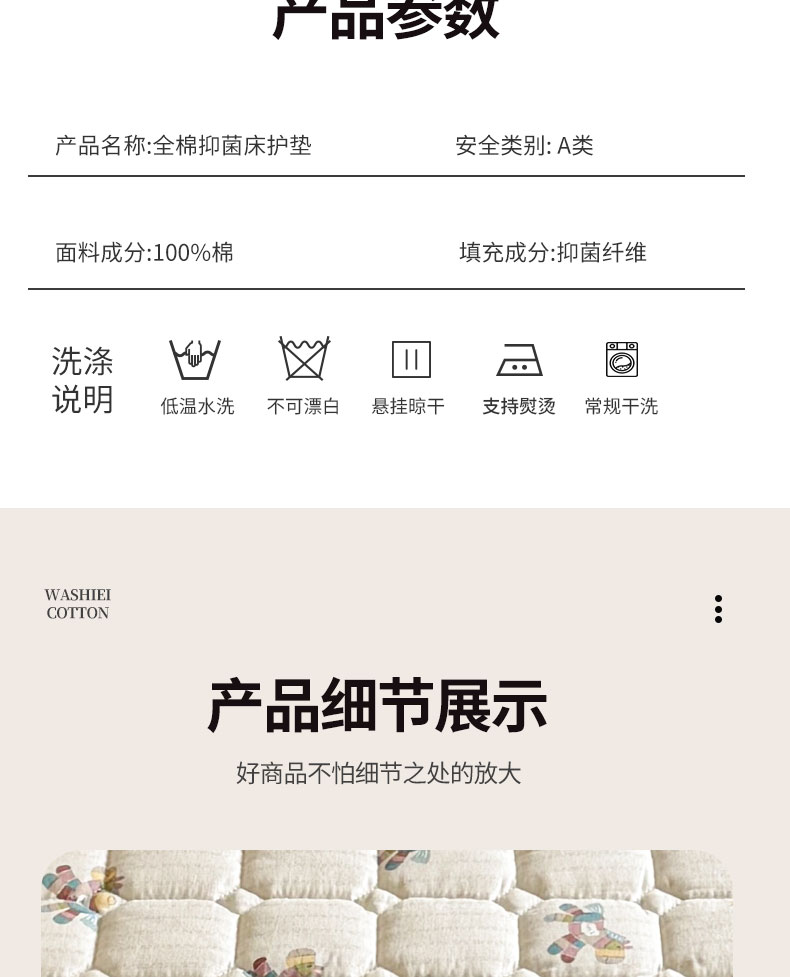 全棉抗菌防滑床褥-小马浅浅